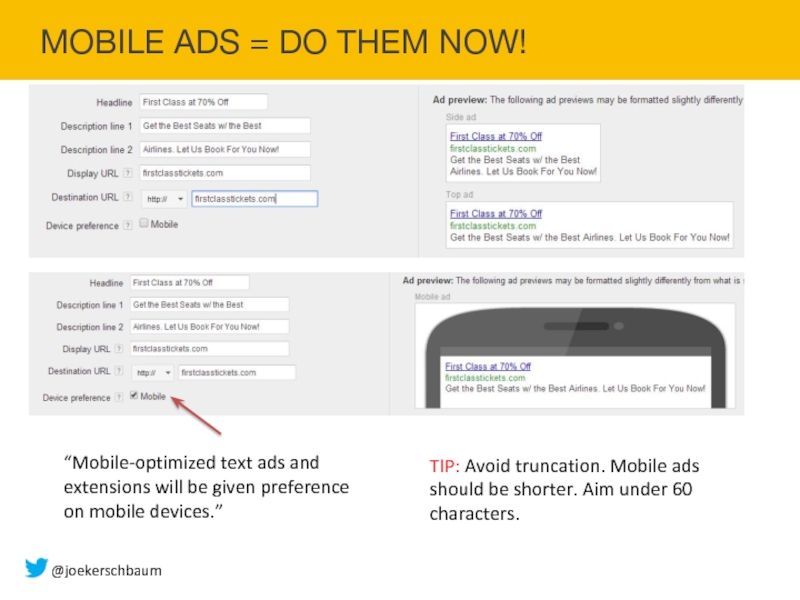 TIP: Avoid truncation. Mobile ads should be shorter. Aim under 60 characters.