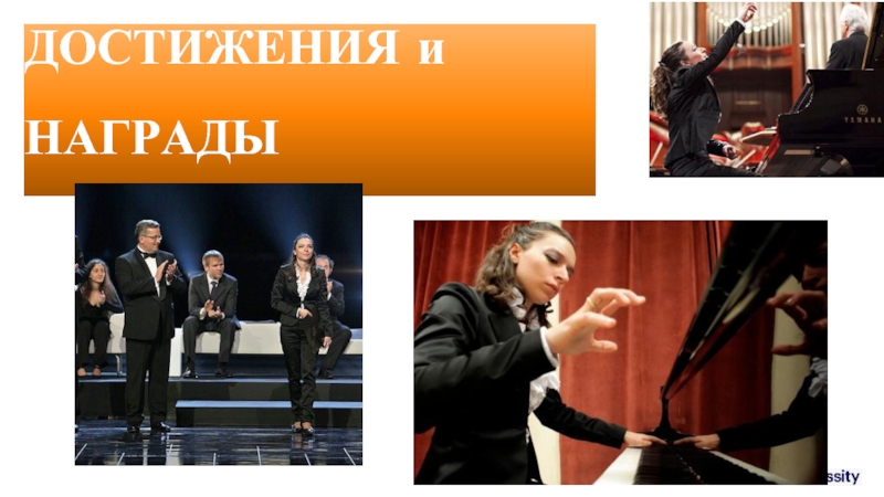 2. Выиграла Женевский международный музыкальный конкурс в 2006-м и стала призером множества фортепианных конкурсов. Ей достался главный приз Конкурса юных пианистов имени Карла Черни в Праге в 1997-м, гран-при 1-го всероссийского открытого конкурса в Москве в 2000-м и главный приз 5-о Конкурса юных пианистов памяти Рубинштейна в 2002-м.