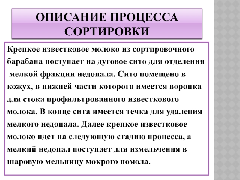 Слайд 6ОПИСАНИЕ ПРОЦЕССА СОРТИРОВКИ