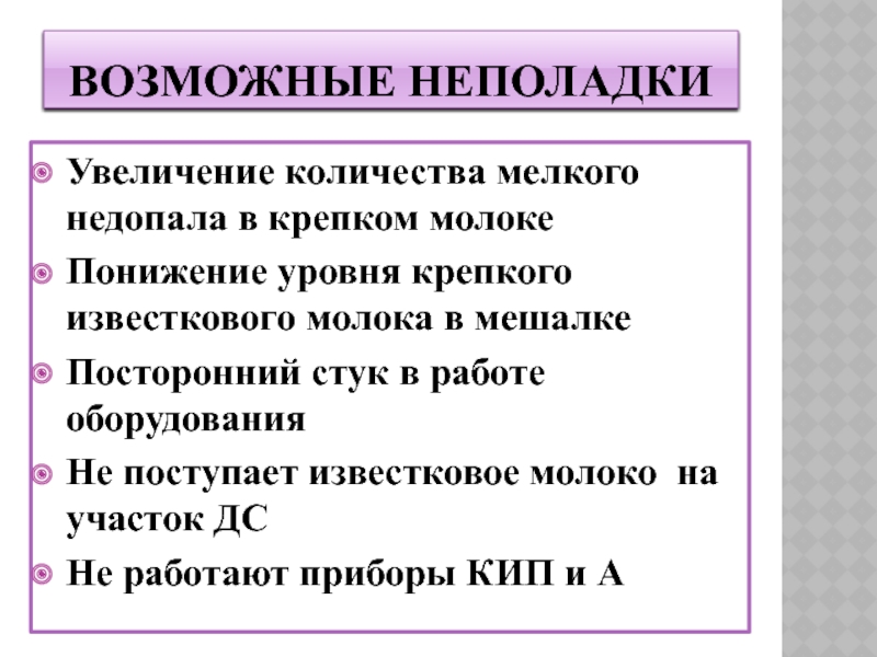Слайд 8ВОЗМОЖНЫЕ НЕПОЛАДКИ