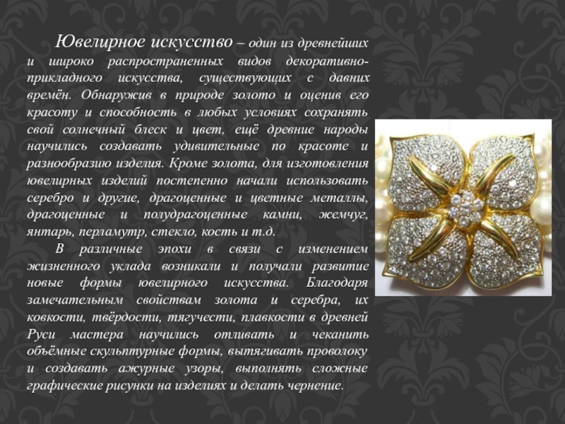 Иногда его обогащают чернью – мелкими напаянными шариками, ювелирными камнями или гладкими металлическими накладками.