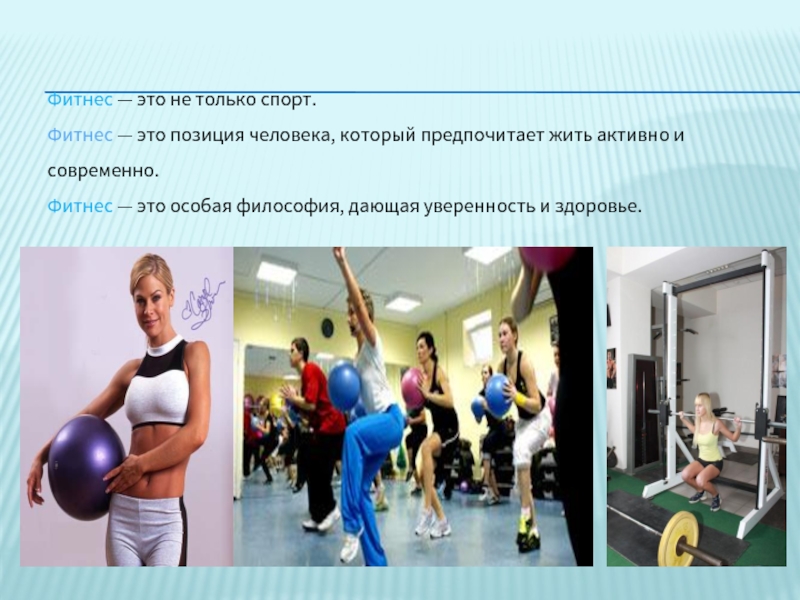 Фитнес — это особая философия, дающая уверенность и здоровье.
