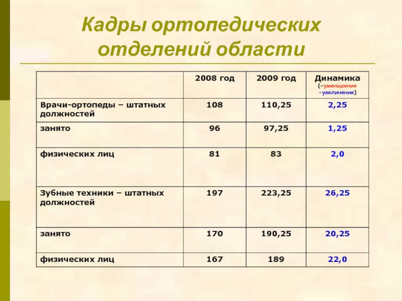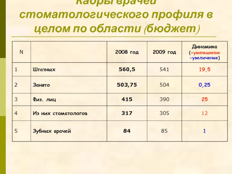 Слайд 5Кадры врачей стоматологического профиля в целом по области (бюджет)