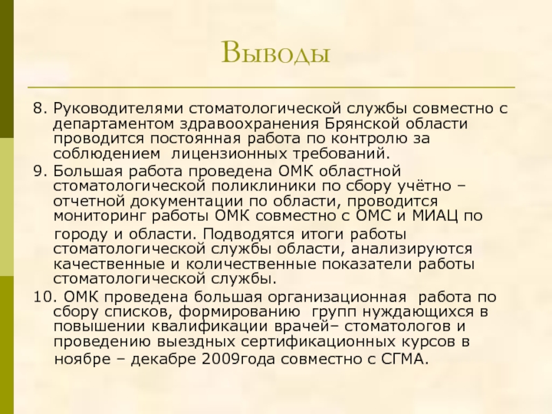 8. Руководителями стоматологической службы совместно с департаментом здравоохранения Брянской области проводится