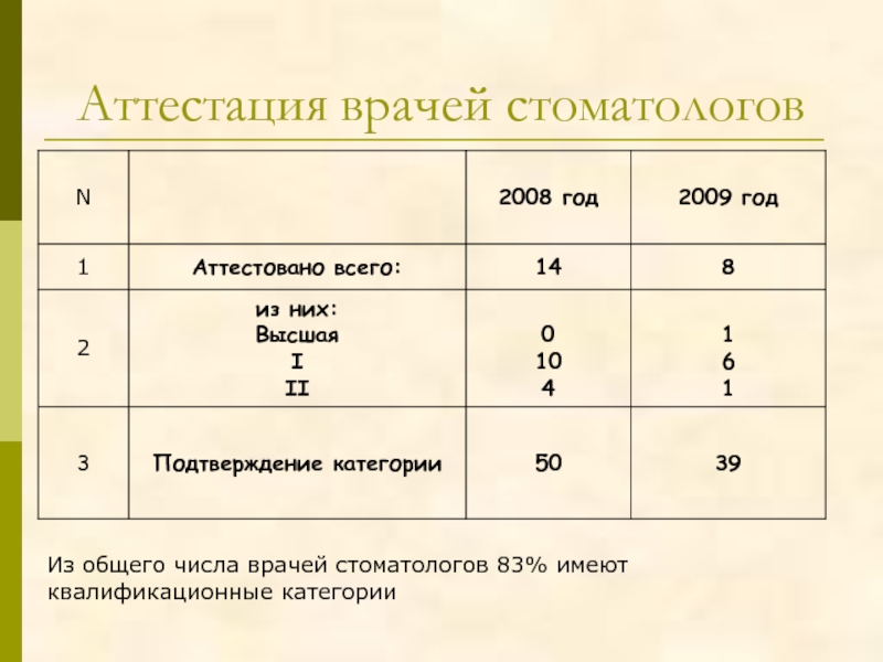 Из общего числа врачей стоматологов 83% имеют квалификационные категории