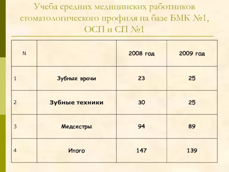 Слайд 15Учеба средних медицинских работников стоматологического профиля на базе БМК №1, ОСП