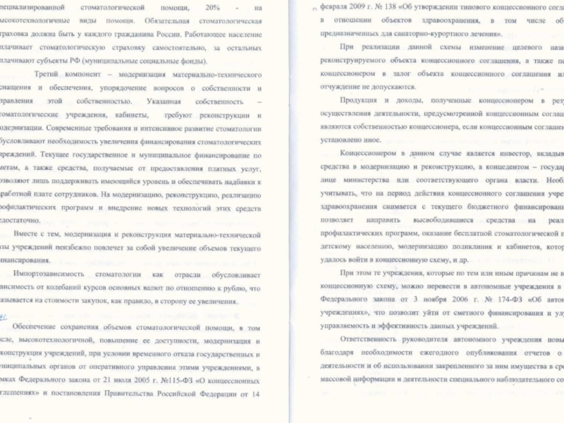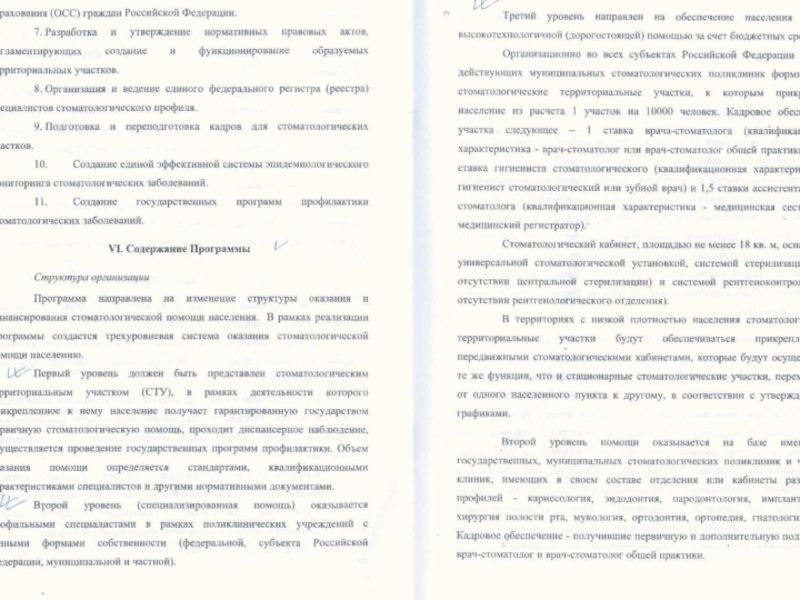 в целях совершенствования нормативных документов, действующих в стоматологии, обращалась в различные инстанции со следующими инициативами: