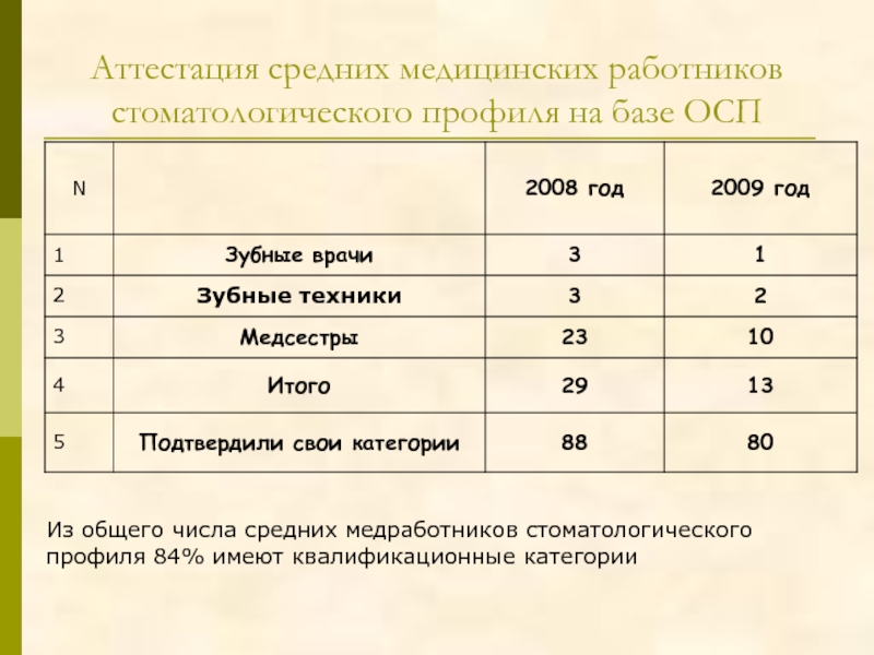 средних медработников стоматологического профиля 84% имеют квалификационные категории