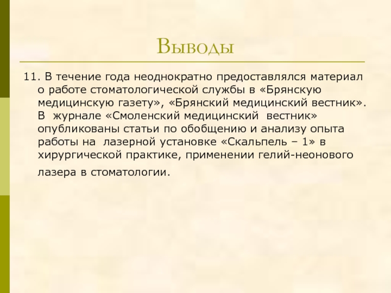11. В течение года неоднократно предоставлялся материал о работе стоматологической службы