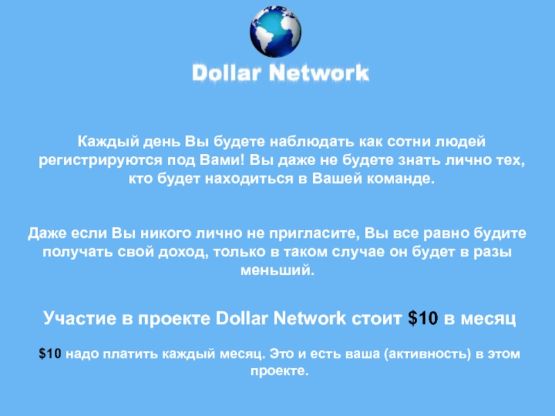 Участие в проекте Dollar Network стоит $10 в месяц