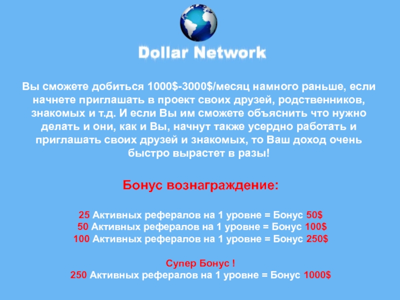 Dollar Network сам дает вам рефералов (неограниченно) !