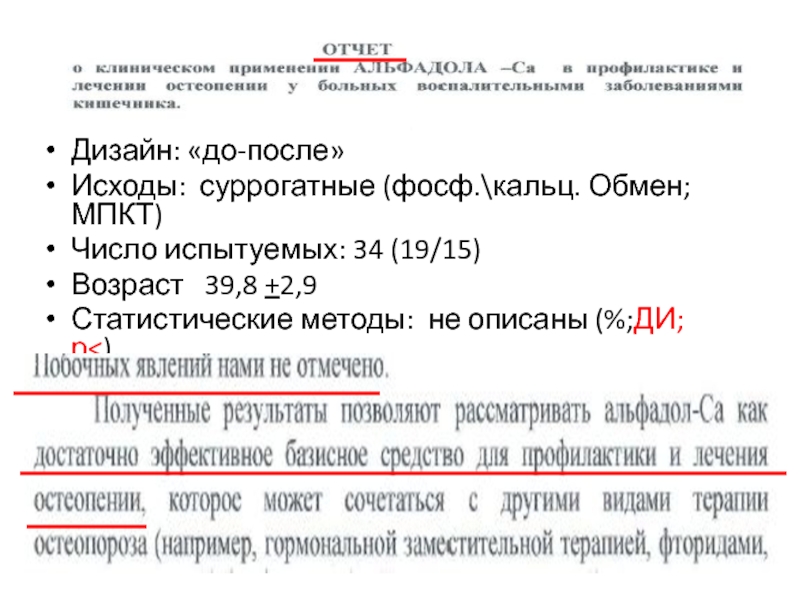 Исходы – суррогатные ( ур.Са; МПКТ). Переломы вскользь упомянуты в