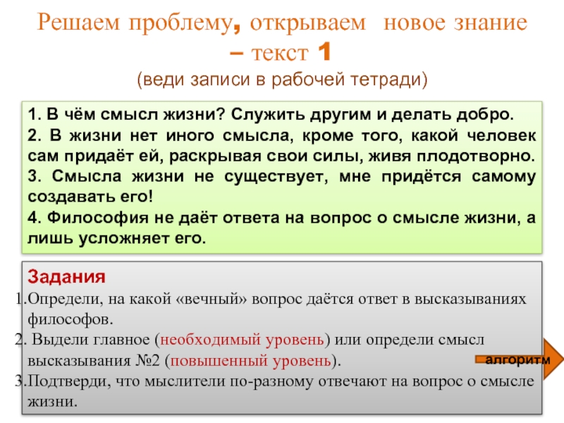 Подтверди, что мыслители по-разному отвечают на вопрос о смысле жизни.
