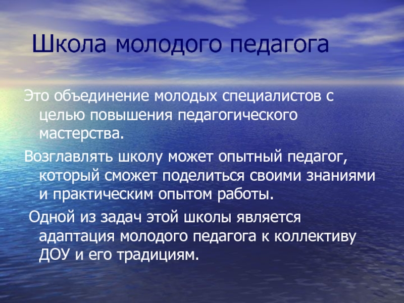 Одной из задач этой школы является адаптация молодого педагога к коллективу ДОУ и его традициям.