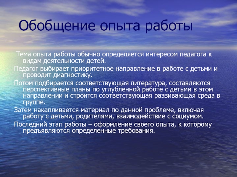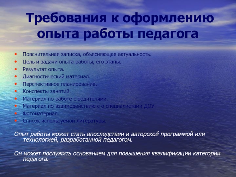Последний этап работы – оформление своего опыта, к которому предъявляются определенные требования.