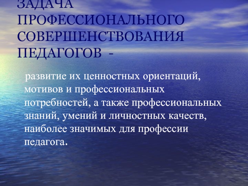 Слайд 2ЗАДАЧА ПРОФЕССИОНАЛЬНОГО СОВЕРШЕНСТВОВАНИЯ ПЕДАГОГОВ -