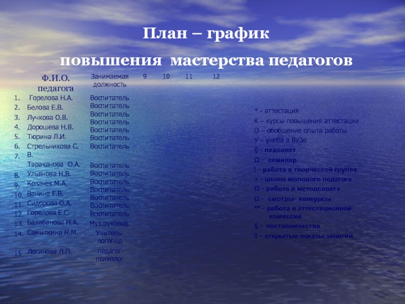 Её цель: повышение социально-психологической культуры воспитателя, знакомство с общечеловеческой и национальной культурой и личностное развитие педагогов.