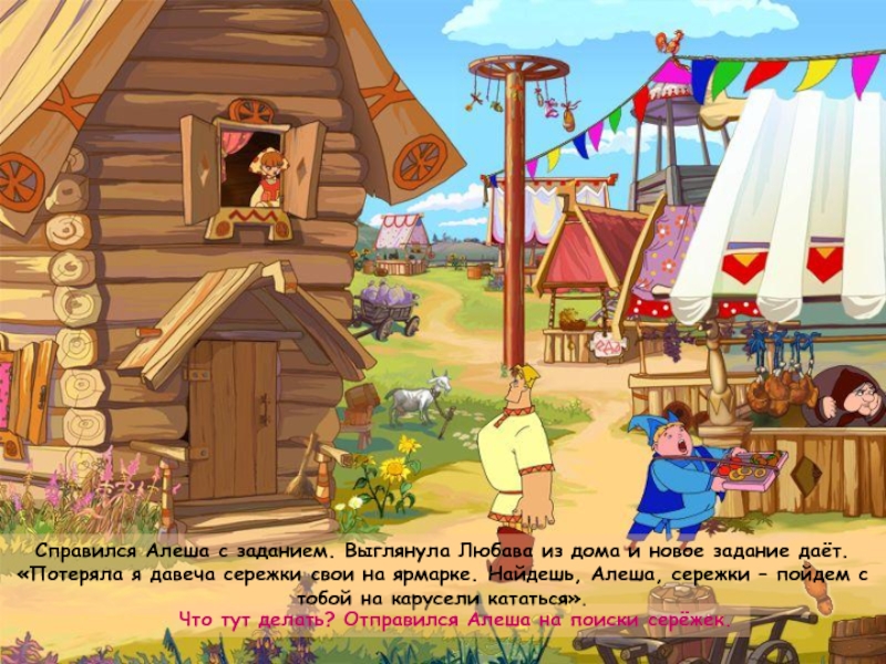 Пришел как-то Алеша на ярмарку на людей посмотреть, себя показать. Сейчас, думает, найду Любаву, пойдем вместе на каруселях покатаемся.