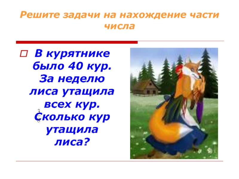 Слайд 10Решите задачи на нахождение части числа