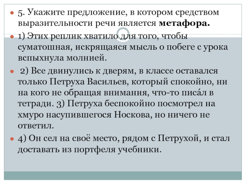 Слайд 231. Укажите предложение, в котором средством выразительности речи является МЕТАФОРА.