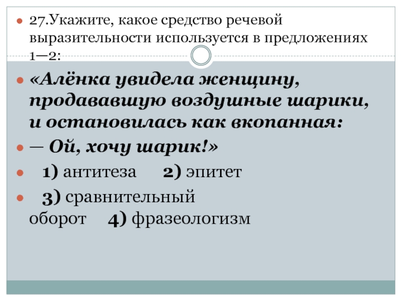 Слайд 121. Укажите, какое средство выразительности использовано в приведенном ниже предложении.