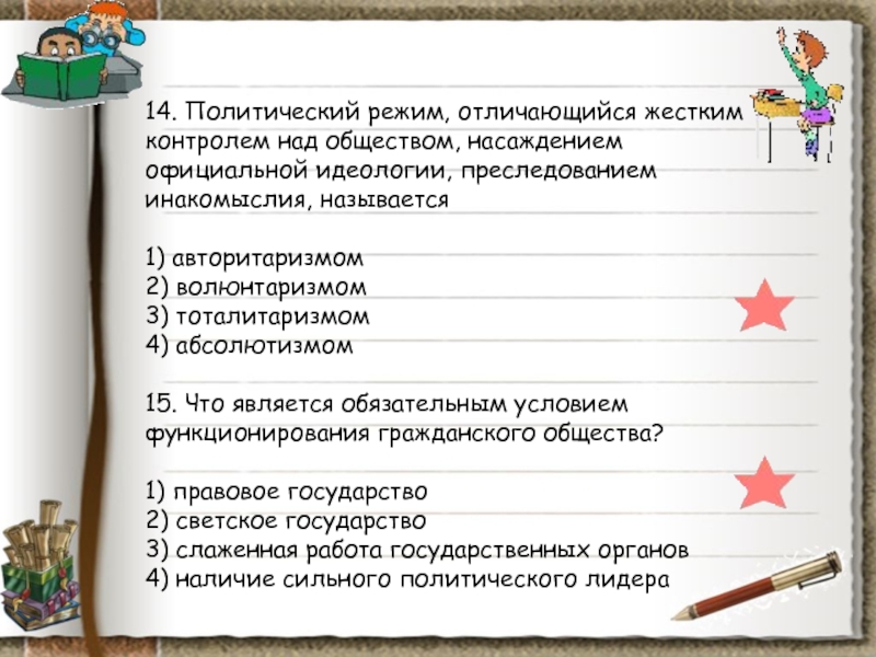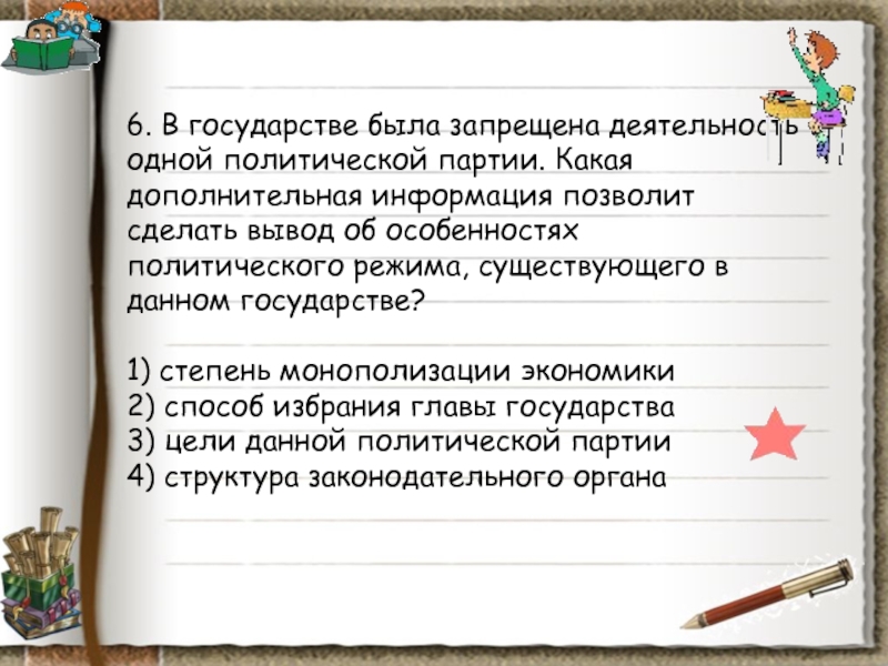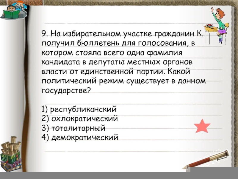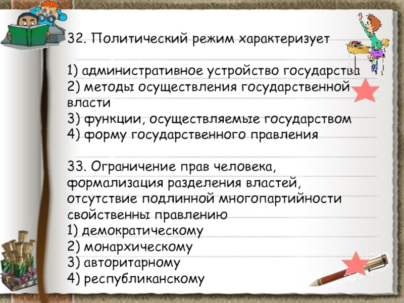 Слайд 8826. К характеристике политического режима относится термин