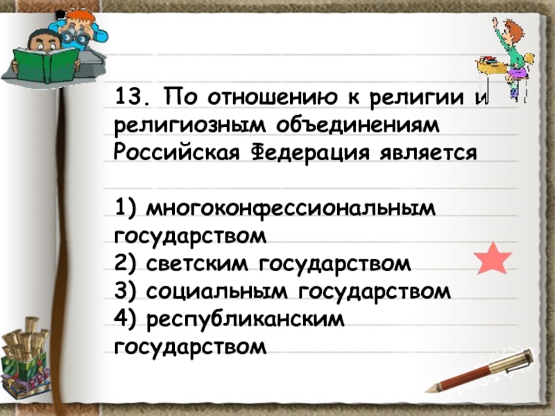 Слайд 1413. По отношению к религии и религиозным объединениям Российская Федерация является