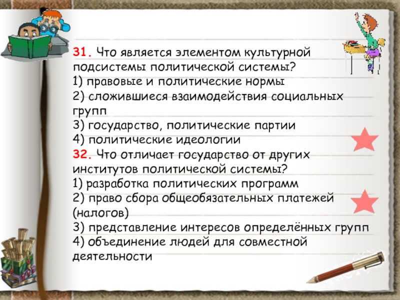 Слайд 43. Что характеризует любое государство как основной элемент политической системы?