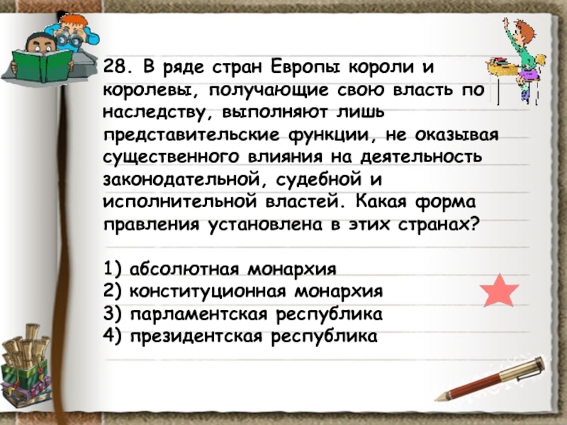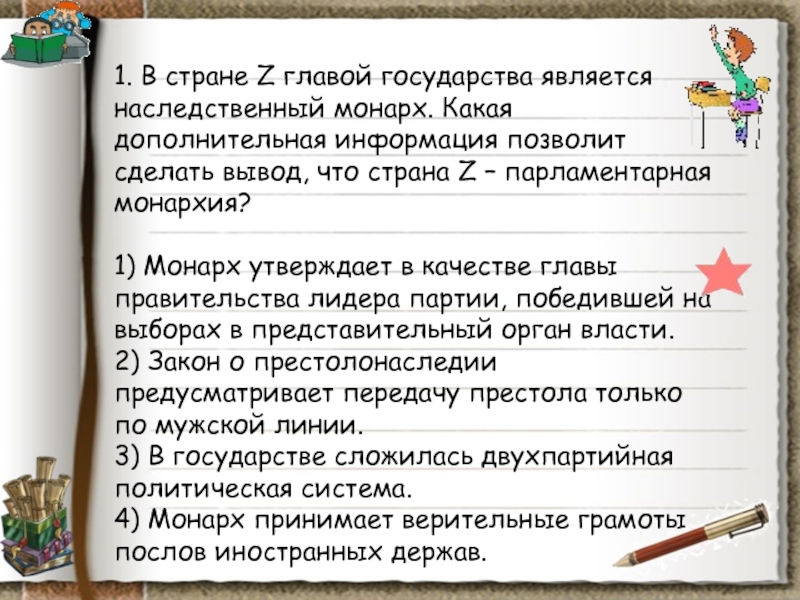 Слайд 9129. Главой государства Z является наследственный правитель, власть которого не имеет
