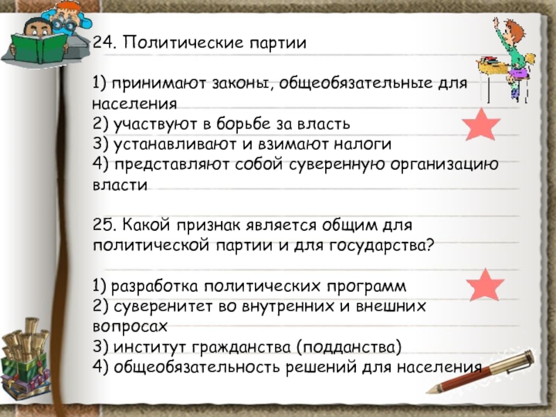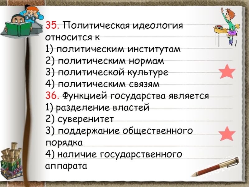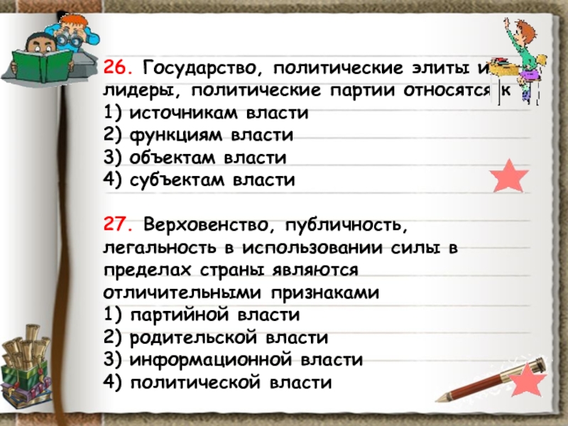 (Понятие власти; государство, его функции; политическая система; средства массовой
