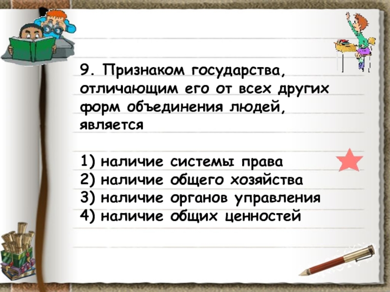 Слайд 109. Признаком государства, отличающим его от всех других форм объединения людей,