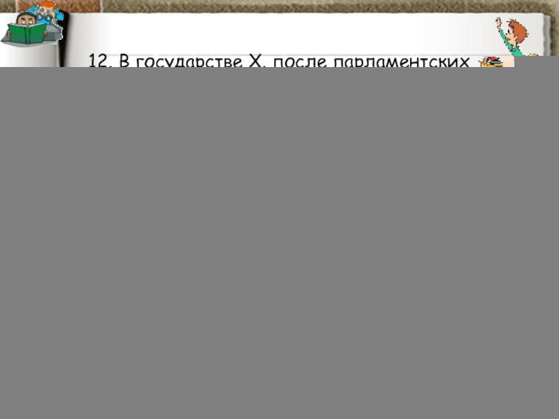 Слайд 9230. Парламент страны Z избирается всенародно по пропорциональной системе. Политическая партия