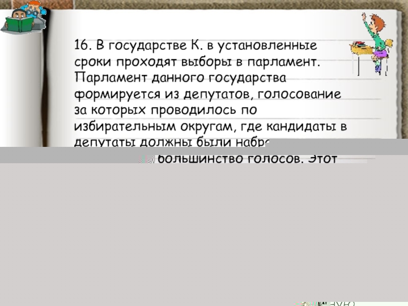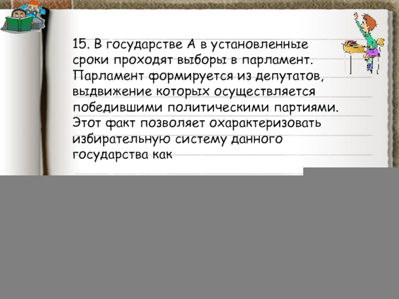 Слайд 9634. В государстве Z депутаты парламента избираются по одномандатным округам. Каждый