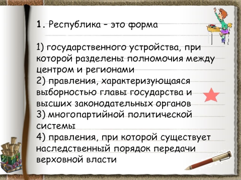 4) республиканским государством