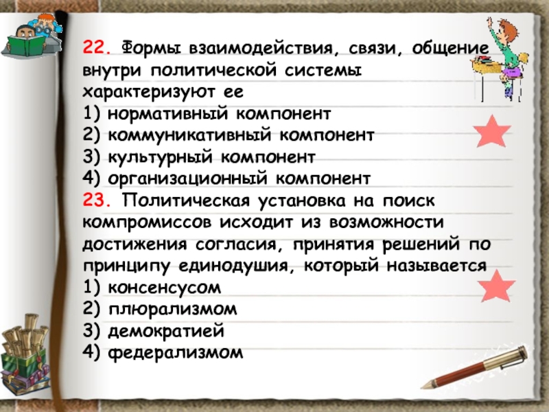 Слайд 8422. К характеристике политического режима относится термин