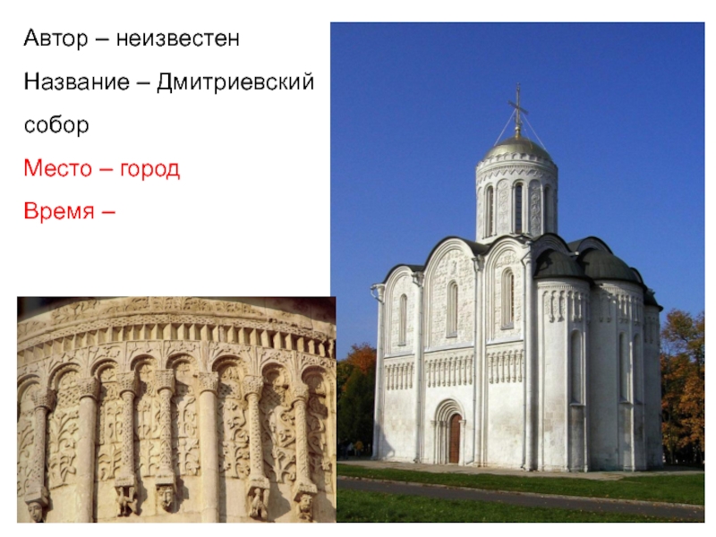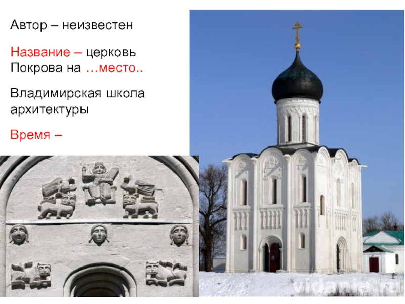 Слайд 25Для какой архитектурной школы было характерно использование белокаменной резьбы?
