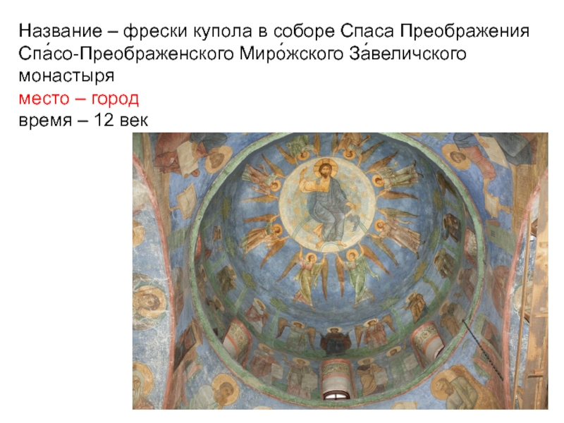Слайд 18Название – фрески купола в соборе Спаса Преображения