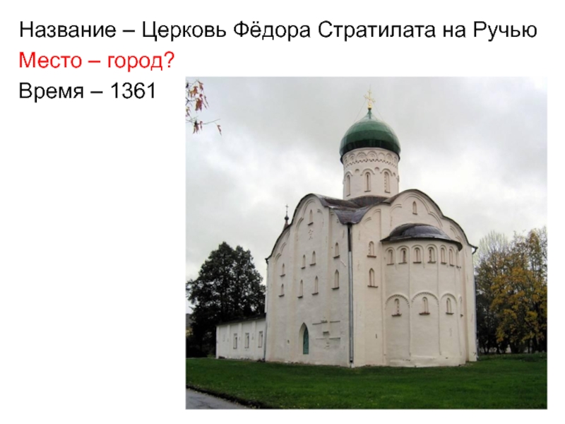 Слайд 8Название – Церковь Фёдора Стратилата на Ручью
