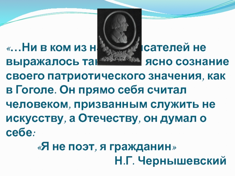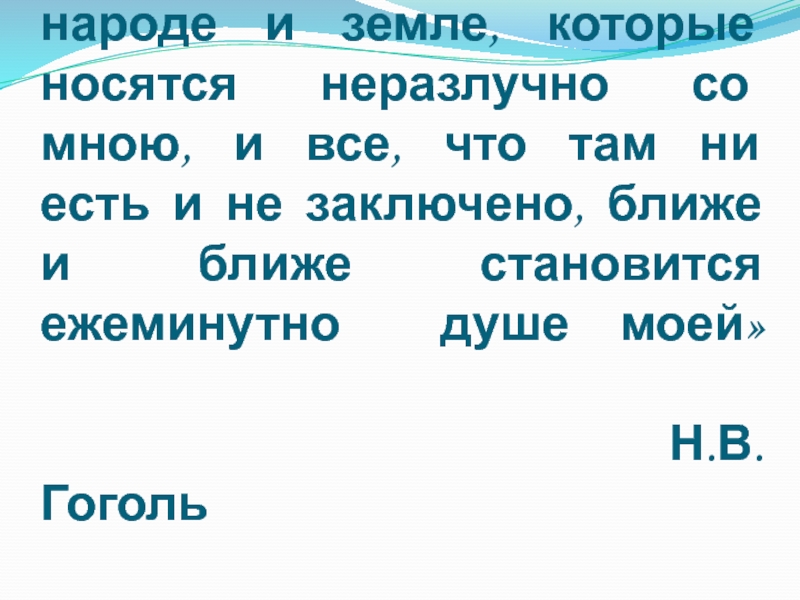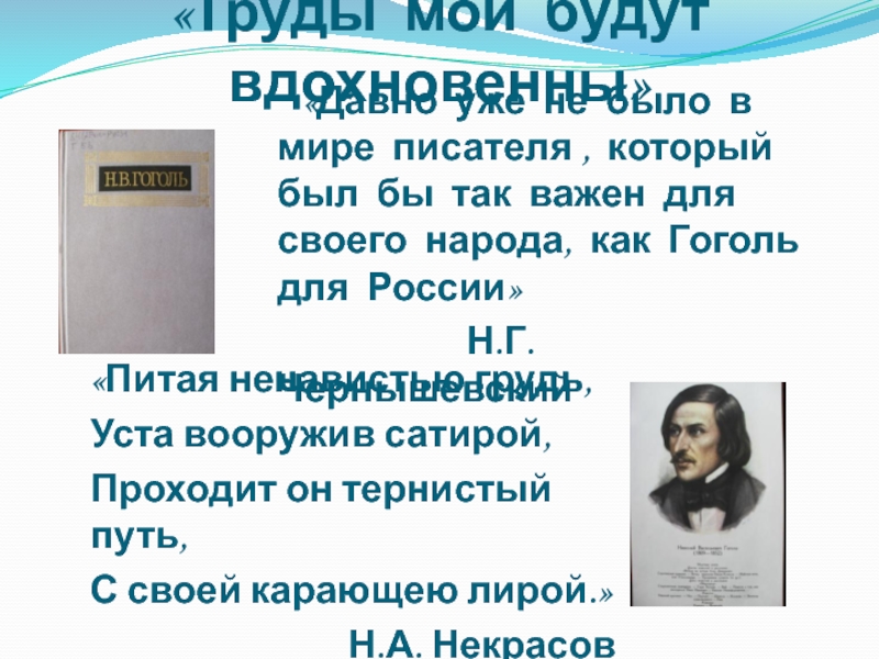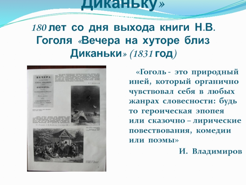 «Гоголь - это природный иней, который органично чувствовал себя в любых  жанрах словесности: будь то героическая эпопея или сказочно – лирические повествования, комедии или поэмы»