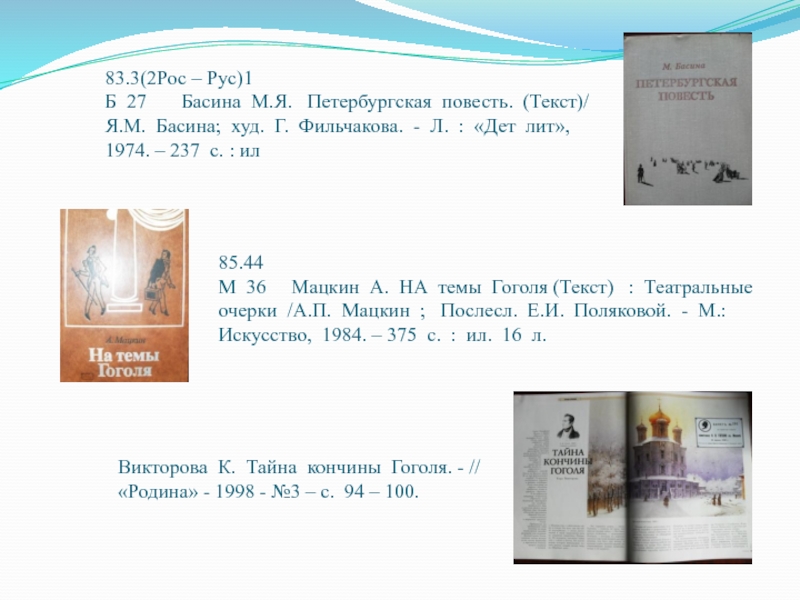 Викторова К. Тайна кончины Гоголя. - // «Родина» - 1998 - №3 – с. 94 – 100.