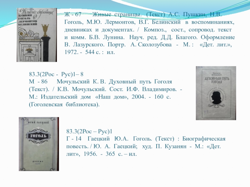 Г 58    Н.В. Гоголь в русской критике и воспоминаниях современников. (Текст) / Под. ред. С. Машинского ; худ. Н. Хмелевская. - Л.: «Дет. лит.», 1951. – 338 с. : ил.