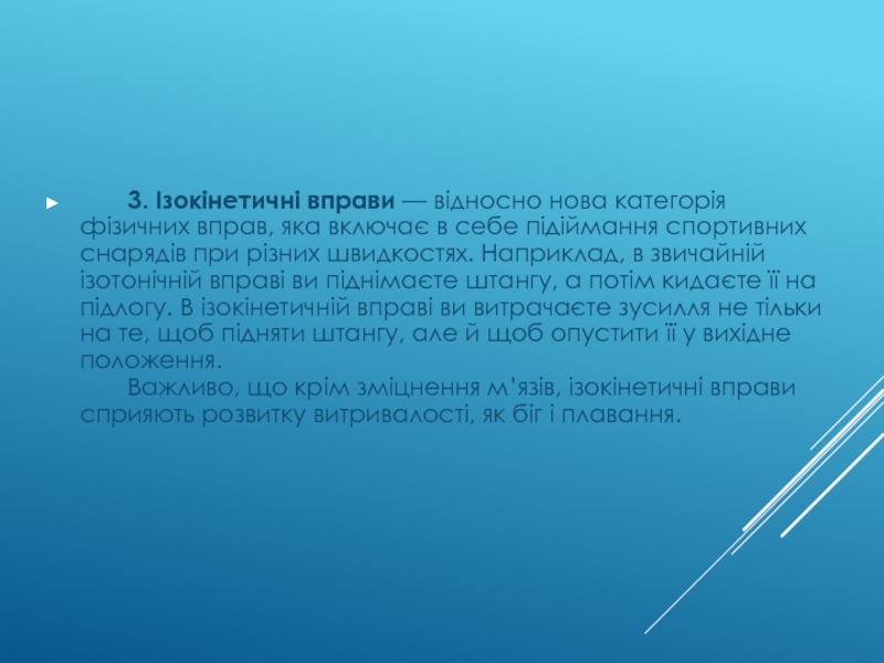 Слайд 7 3. Iзокiнетичнi вправи — вiдносно нова категорiя фiзичних вправ, яка
