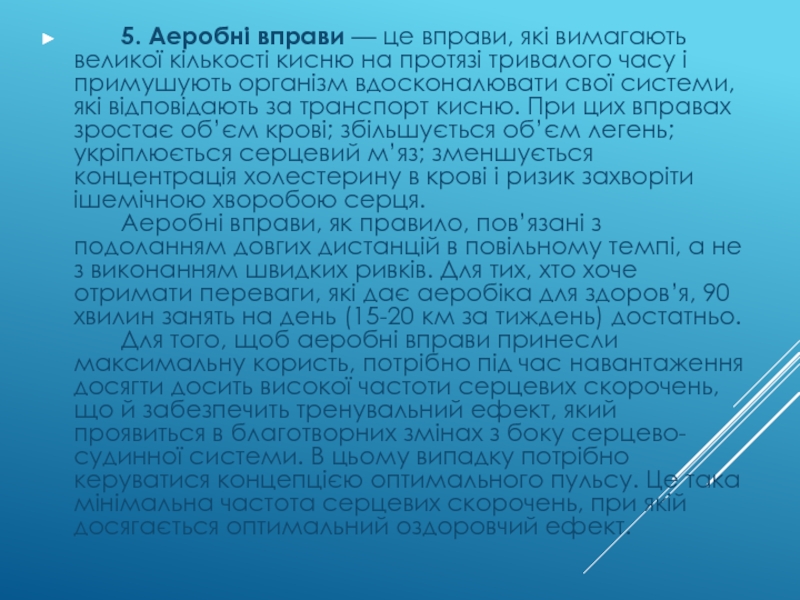 Слайд 9 5. Аеробнi вправи — це вправи, якi вимагають великої кiлькостi