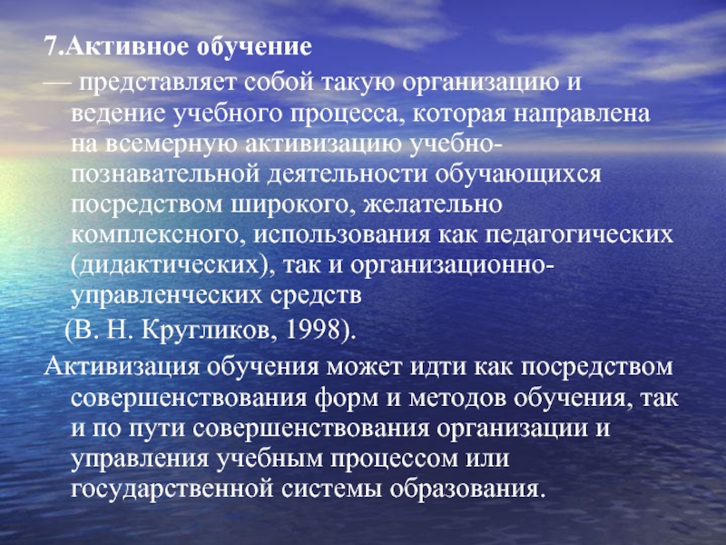 Активизация обучения может идти как посредством совершенствования форм и методов обучения, так и по пути совершенствования организации и управления учебным процессом или государственной системы образования.
