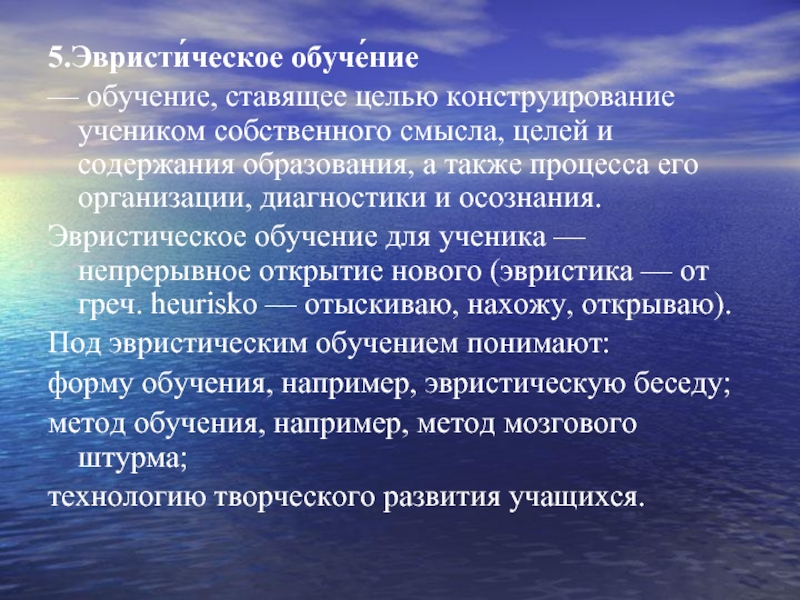 Эвристическое обучение для ученика — непрерывное открытие нового (эвристика — от греч. heurisko — отыскиваю, нахожу, открываю).