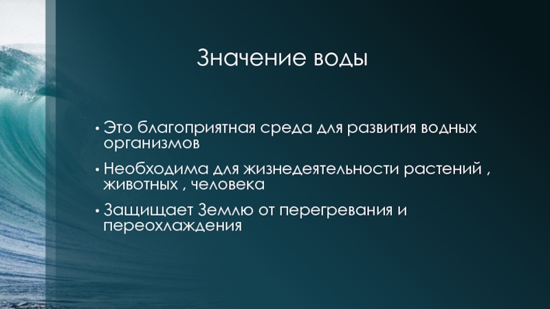 Рассказать о значении гидросферы .