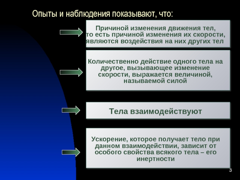 то есть причиной изменения их скорости, являются воздействия на них других тел