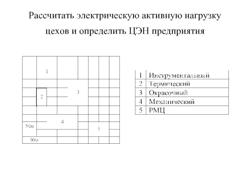 Слайд 30Рассчитать электрическую активную нагрузку цехов и определить ЦЭН предприятия