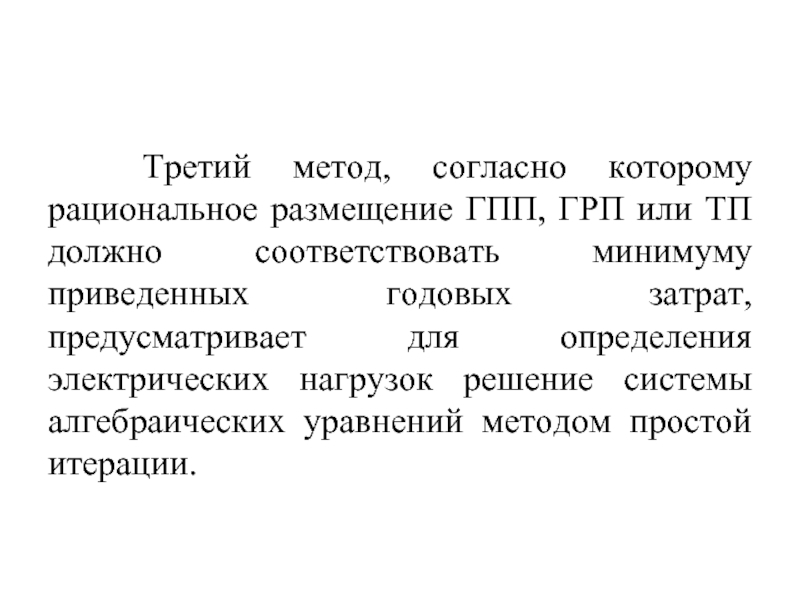 соответствовать минимуму приведенных годовых затрат, предусматривает для определения электрических нагрузок решение системы алгебраических уравнений методом простой итерации.