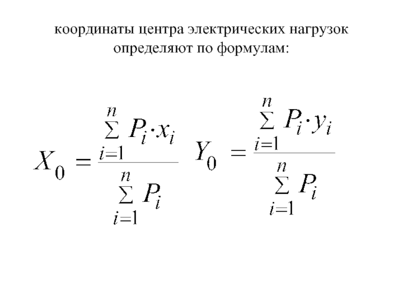 Слайд 13координаты центра электрических нагрузок определяют по формулам: